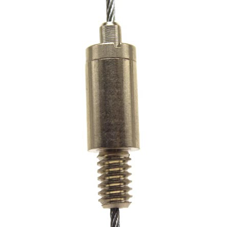 El gripper MGR-1/4-20-M-NK está fabricado en acero inoxidable niquelado y cuenta con rosca inferior 1/4″-20 macho, diseñado para suspender cables de 3/64″ y 1/16″ de manera segura y eficiente. Su salida inferior permite una instalación ordenada y discreta, ideal para aplicaciones de iluminación suspendida.